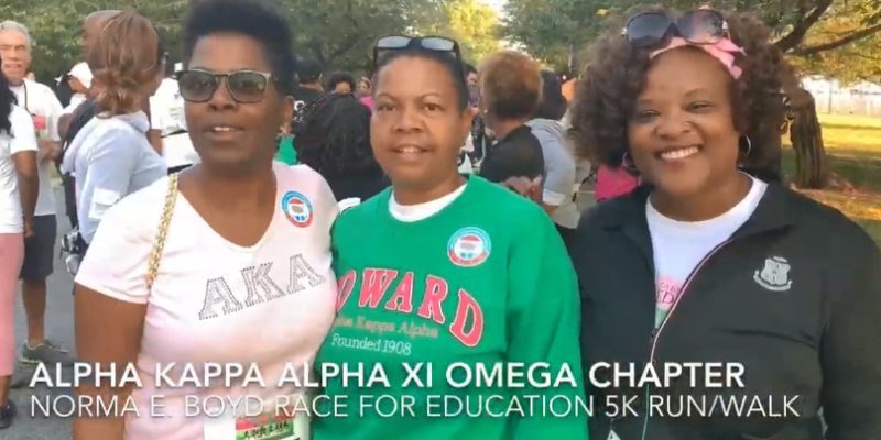 Always Real Talk Kwame Brown catches up with April Gaines-Jernigan at the XI OMEGA Alpha Kappa Alpha’s Norma E. Boyd Race for Education 5k run/walk.